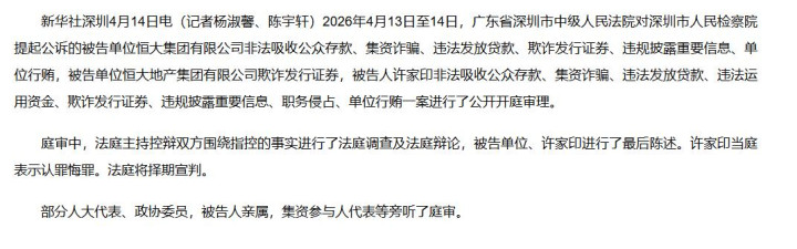 庭审中,恒大集团以及许家印对自身的罪行进行了最后陈述。